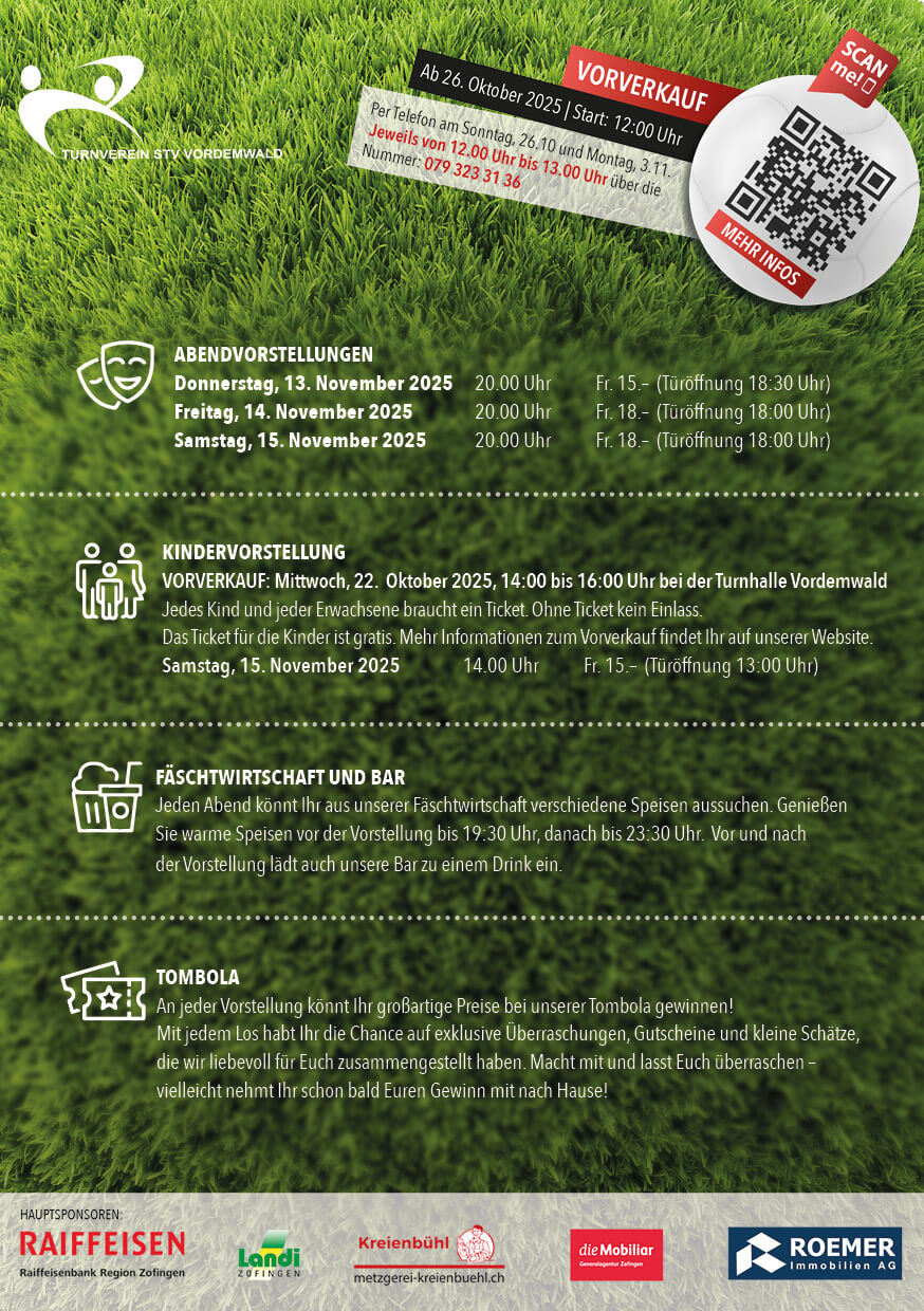 Schon bald heisst es wieder Showtime an unseren Turnerabenden. Sichern sie sich ab dem 31. Oktober ihr Ticket im Vorverkauf. Wir möchten euch dieses Jahr am Turnerabend auf eine Zeitreise mitnehmen in die Vergangenheit. Das diesjährige Motto der Turnerabende heisst: «Wie wir VOR-DEM-WALD kamen». Der Plot der Geschichte: Nach einem…