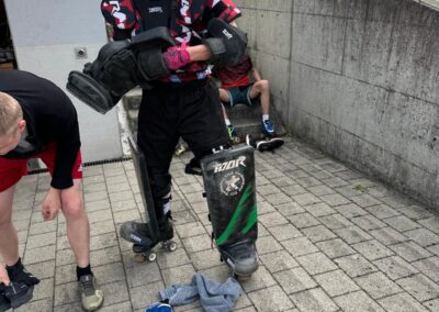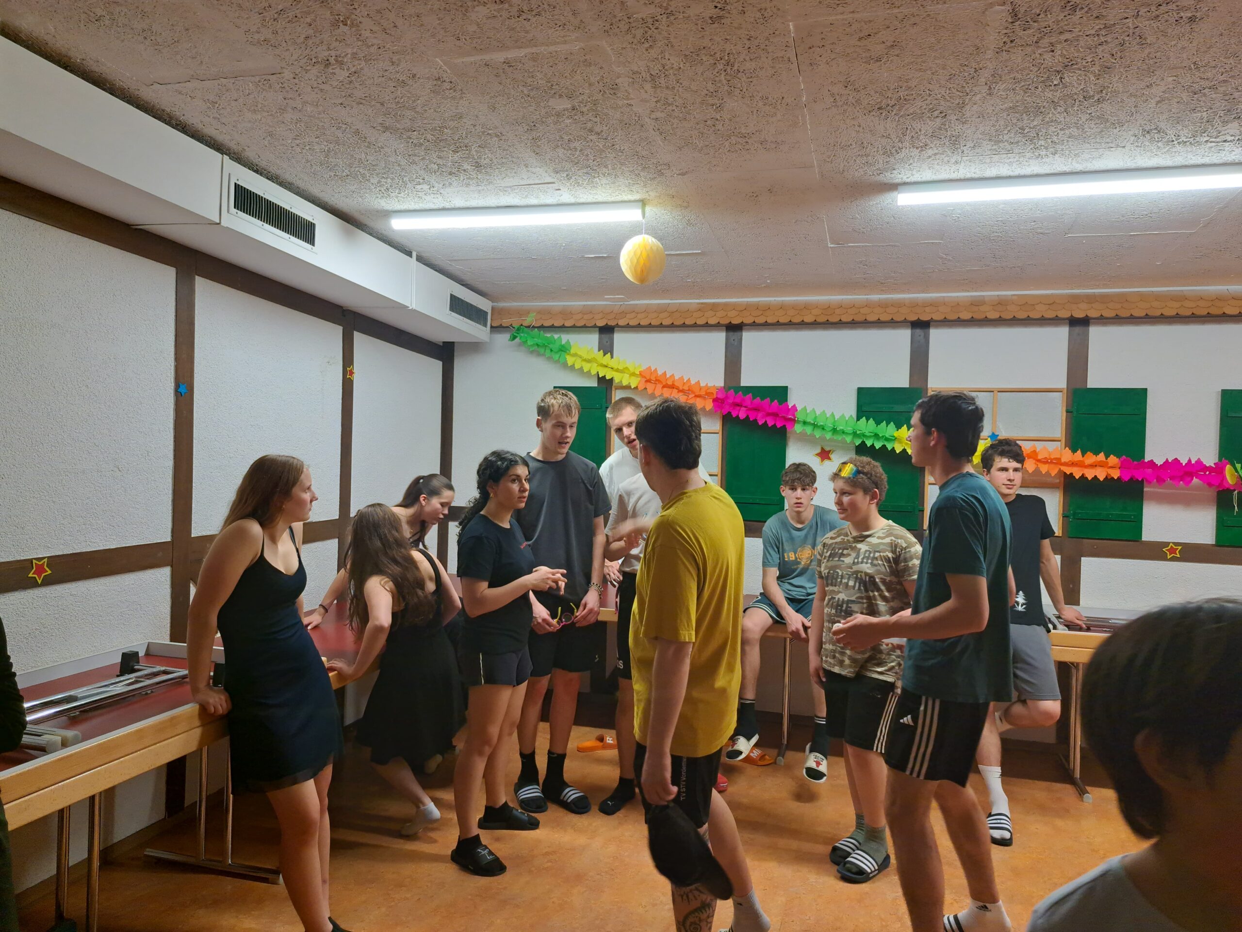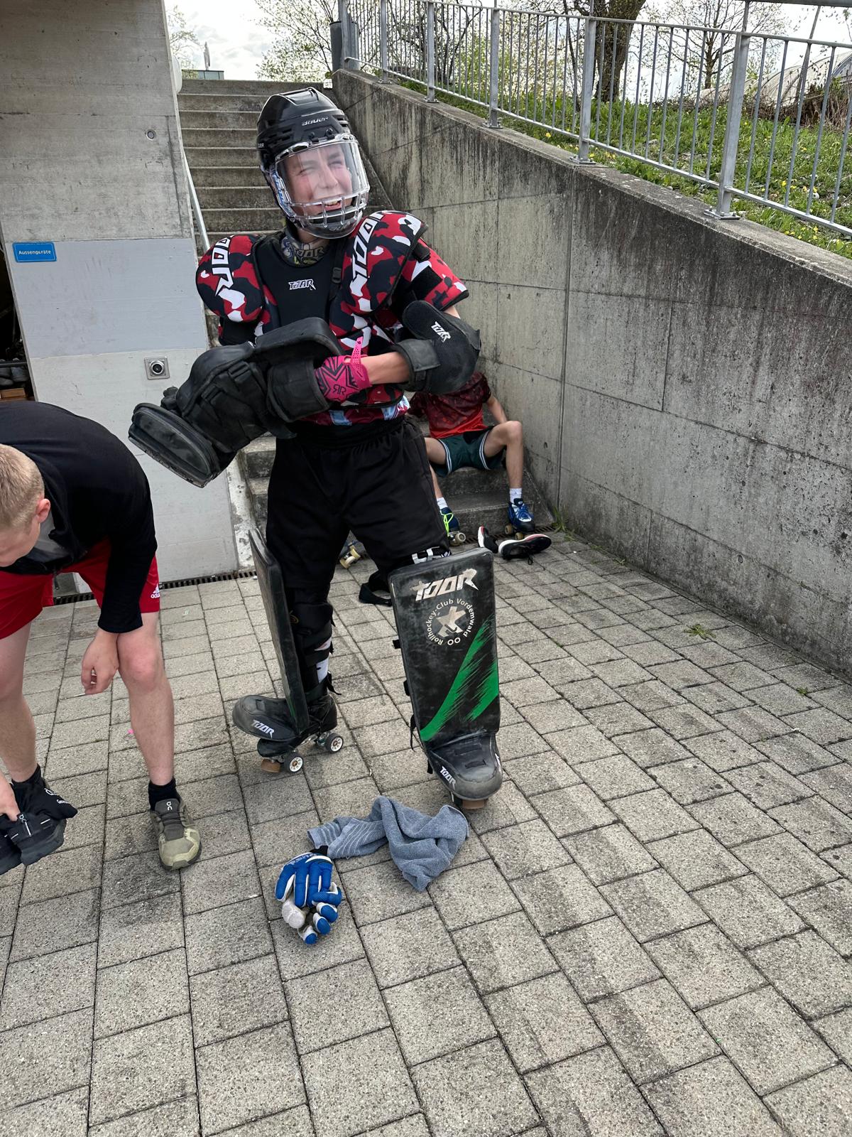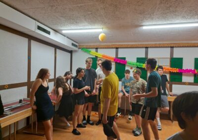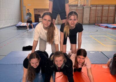 Wie jeden Morgen wurden wir geweckt und assen genüsslich unser frühstück. Nach dem Frühstück gingen wir mit useren 7 Sachen runter i die Turnhalle. Heute war aber alles anders. Nachdem die Leiter fertig mit dem Einwärmen waren, begann der Tauschmorgen. Man begab sich zu der Sportart bei der man sich eingeschrieben hatte ( Faustball, Gymnastik oder Geräteturnen ). Als kleines special dieses Jahr gingen die Faustbälleler mit ein paar der älteren Hockeylern und Leitern auf die Rollschuhe, was sehr amüsant war mitanzusehen.