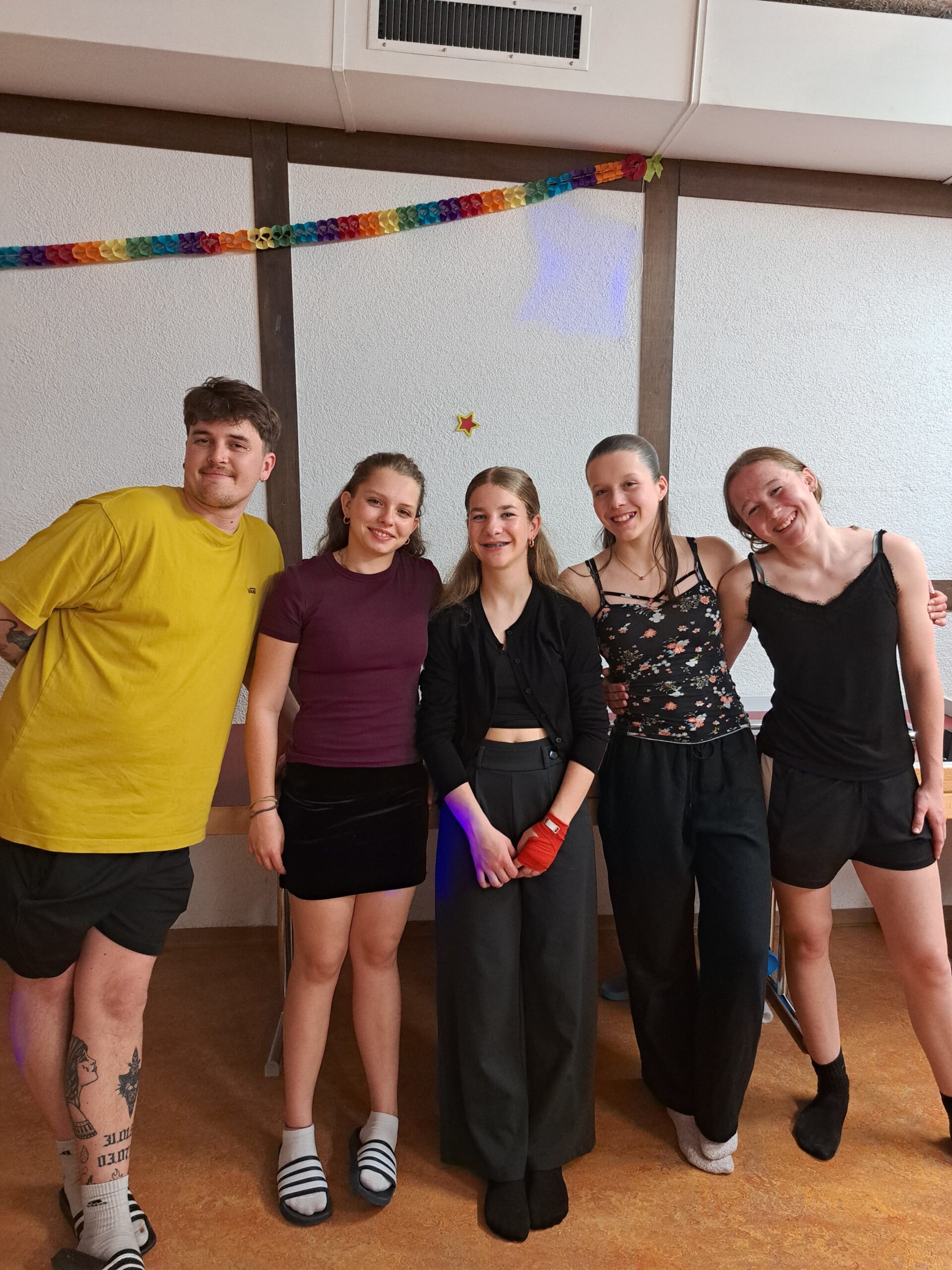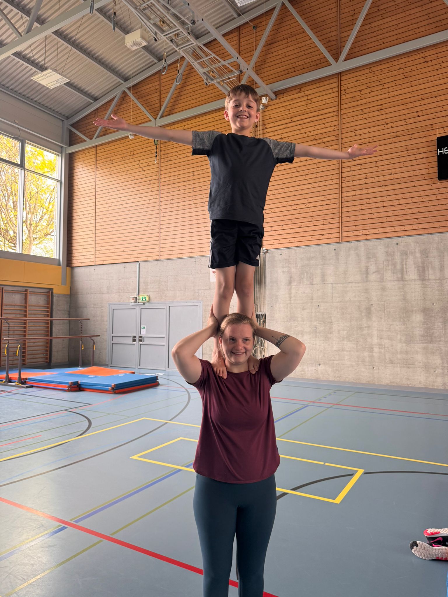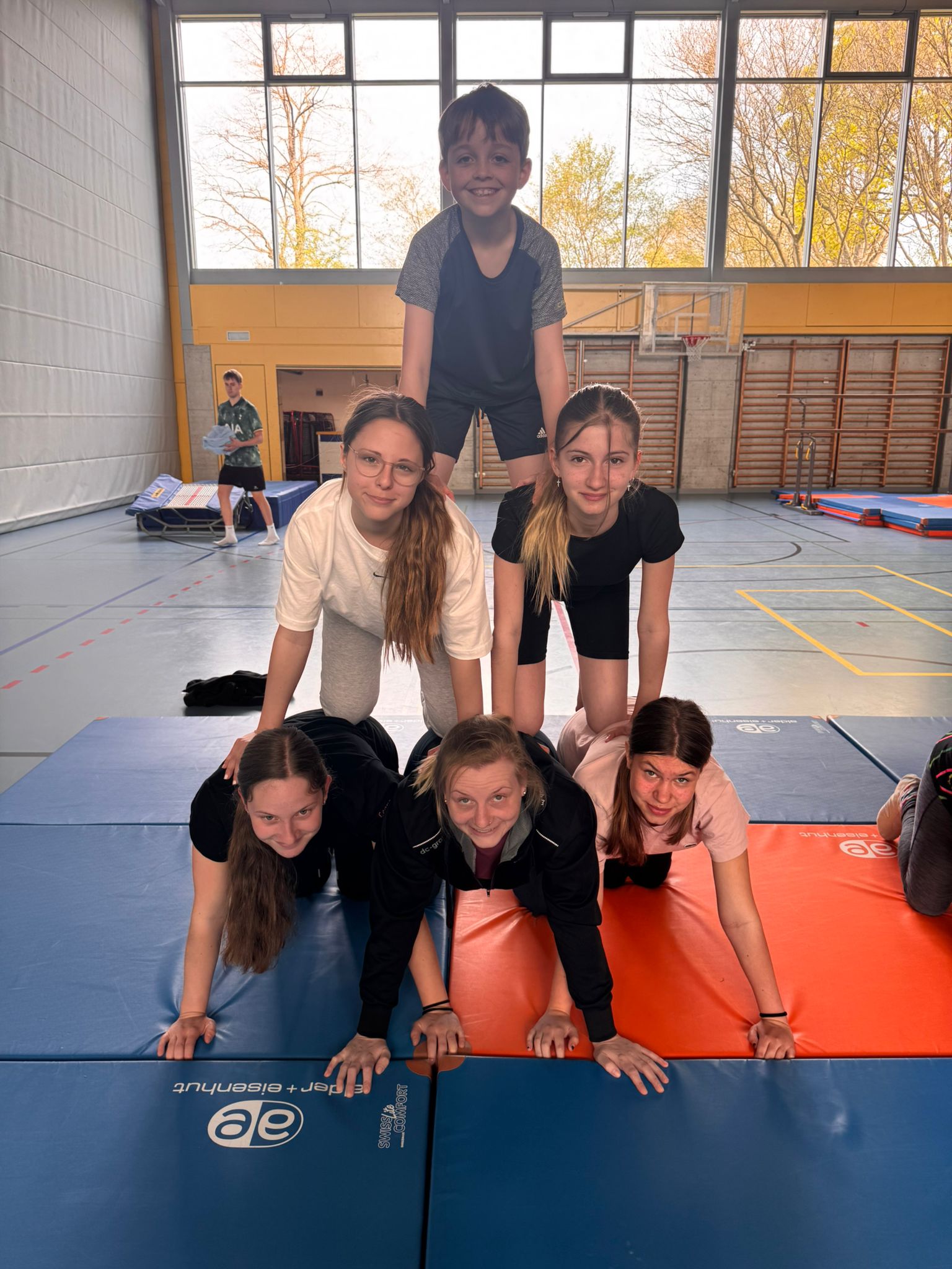 Wie jeden Morgen wurden wir geweckt und assen genüsslich unser frühstück. Nach dem Frühstück gingen wir mit useren 7 Sachen runter i die Turnhalle. Heute war aber alles anders. Nachdem die Leiter fertig mit dem Einwärmen waren, begann der Tauschmorgen. Man begab sich zu der Sportart bei der man sich eingeschrieben hatte ( Faustball, Gymnastik oder Geräteturnen ). Als kleines special dieses Jahr gingen die Faustbälleler mit ein paar der älteren Hockeylern und Leitern auf die Rollschuhe, was sehr amüsant war mitanzusehen.