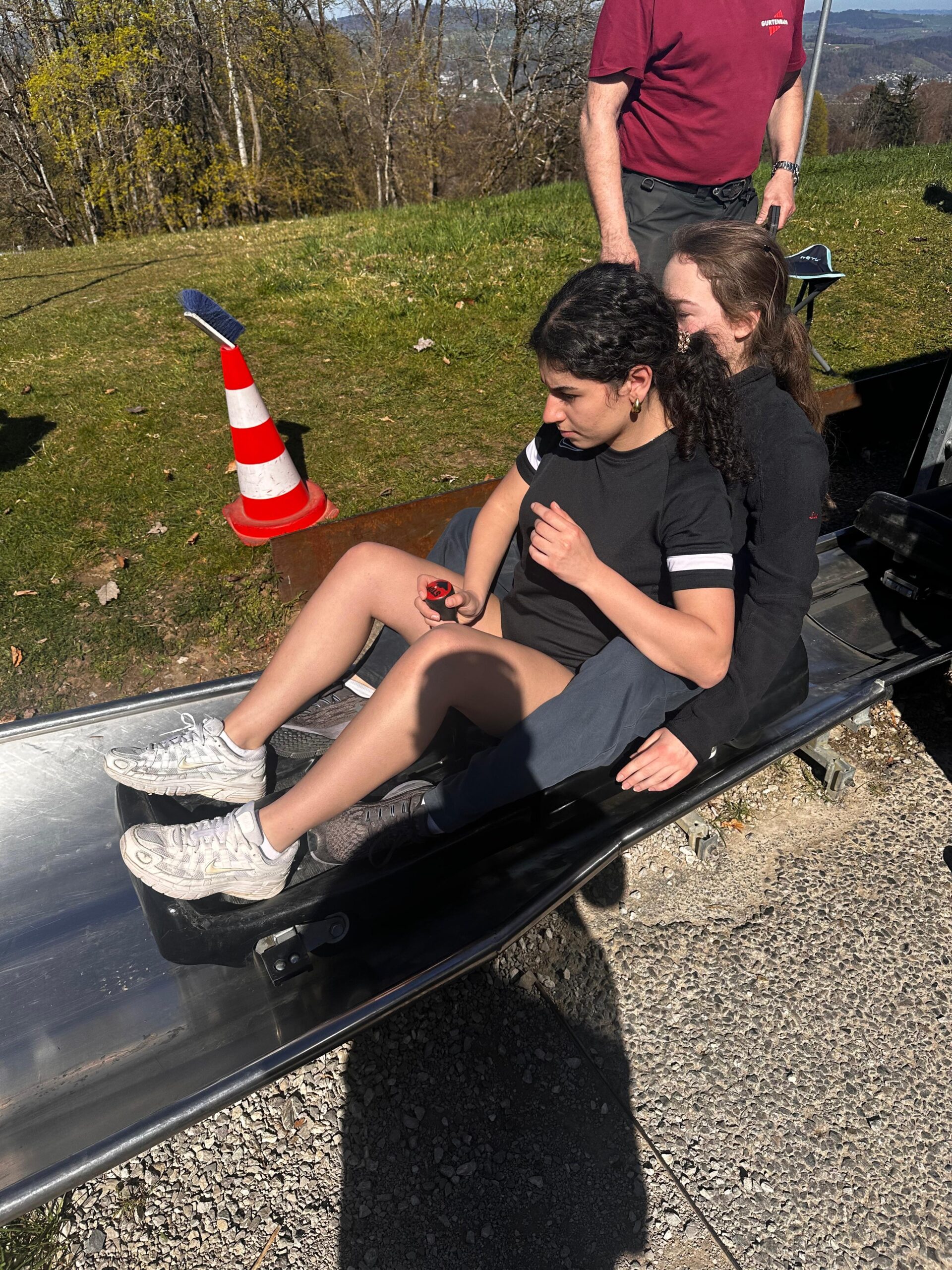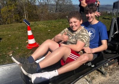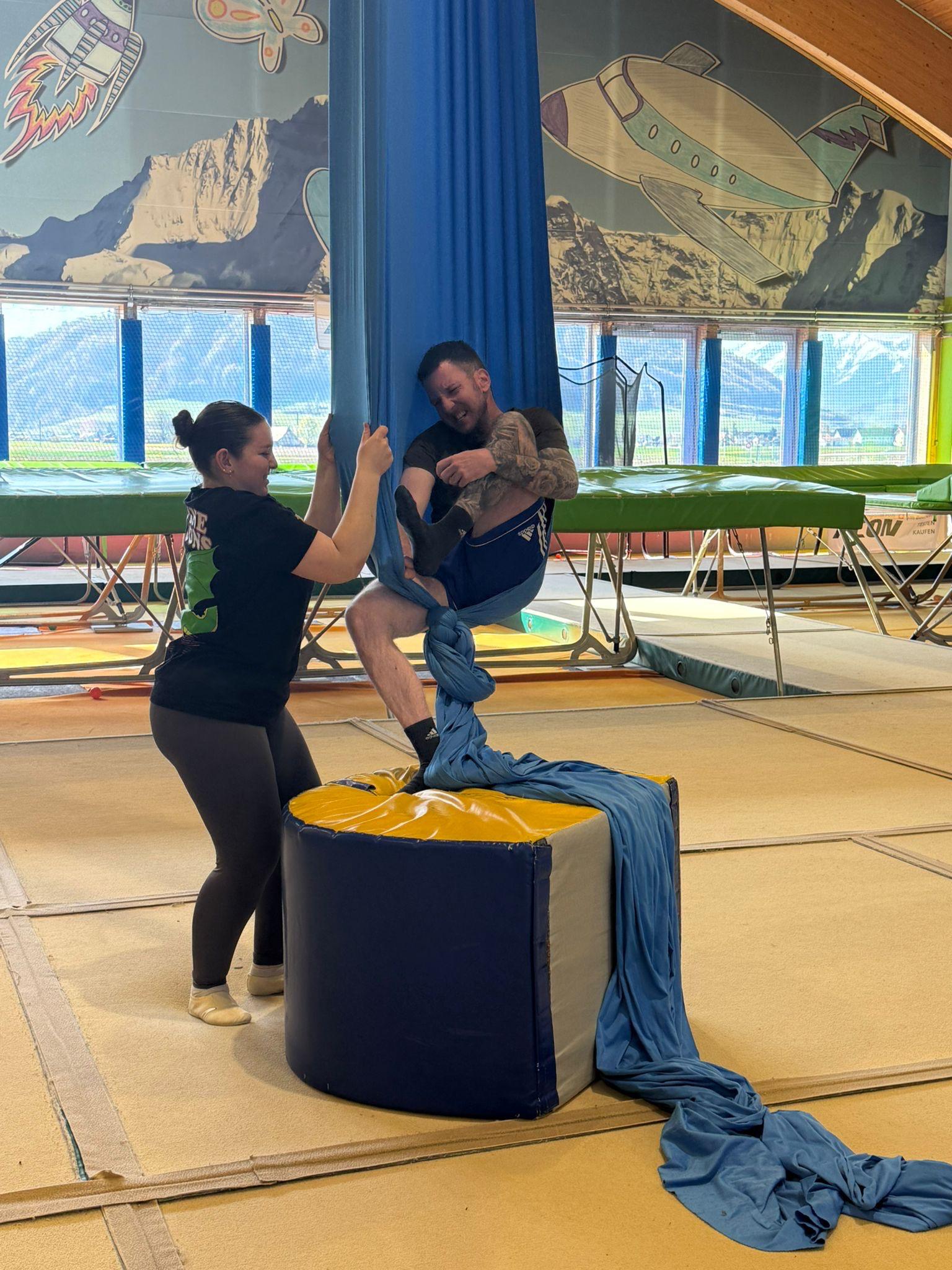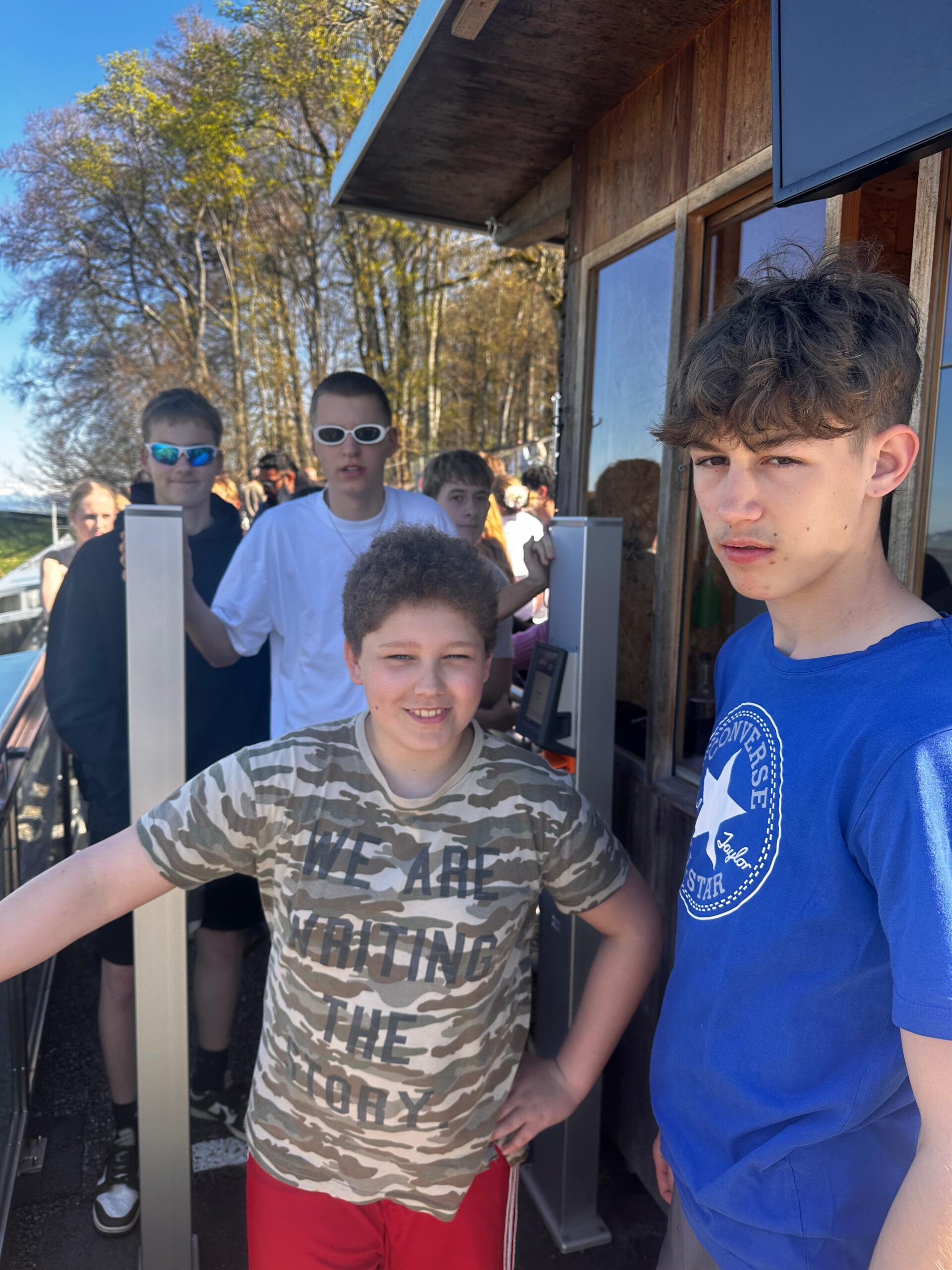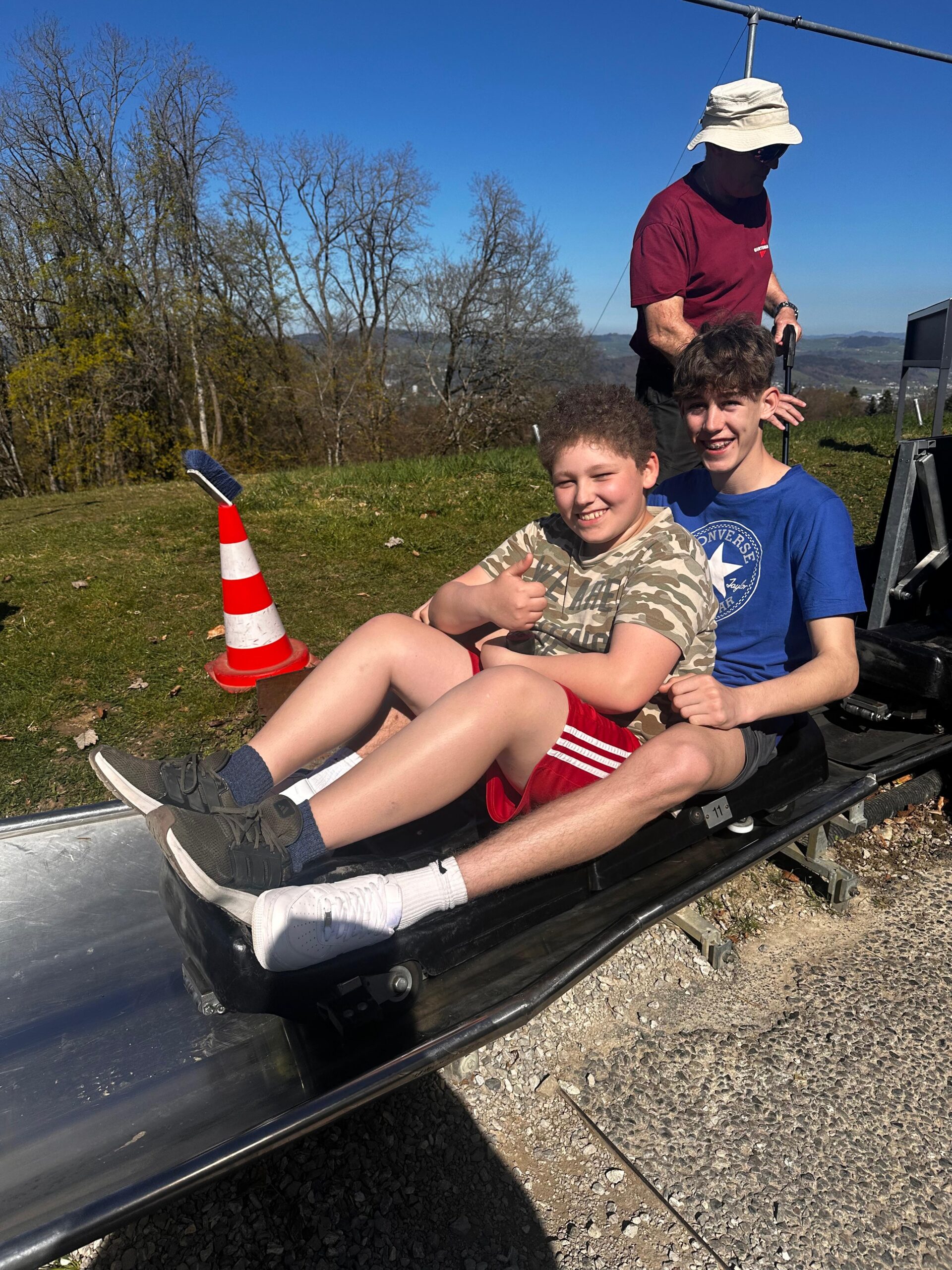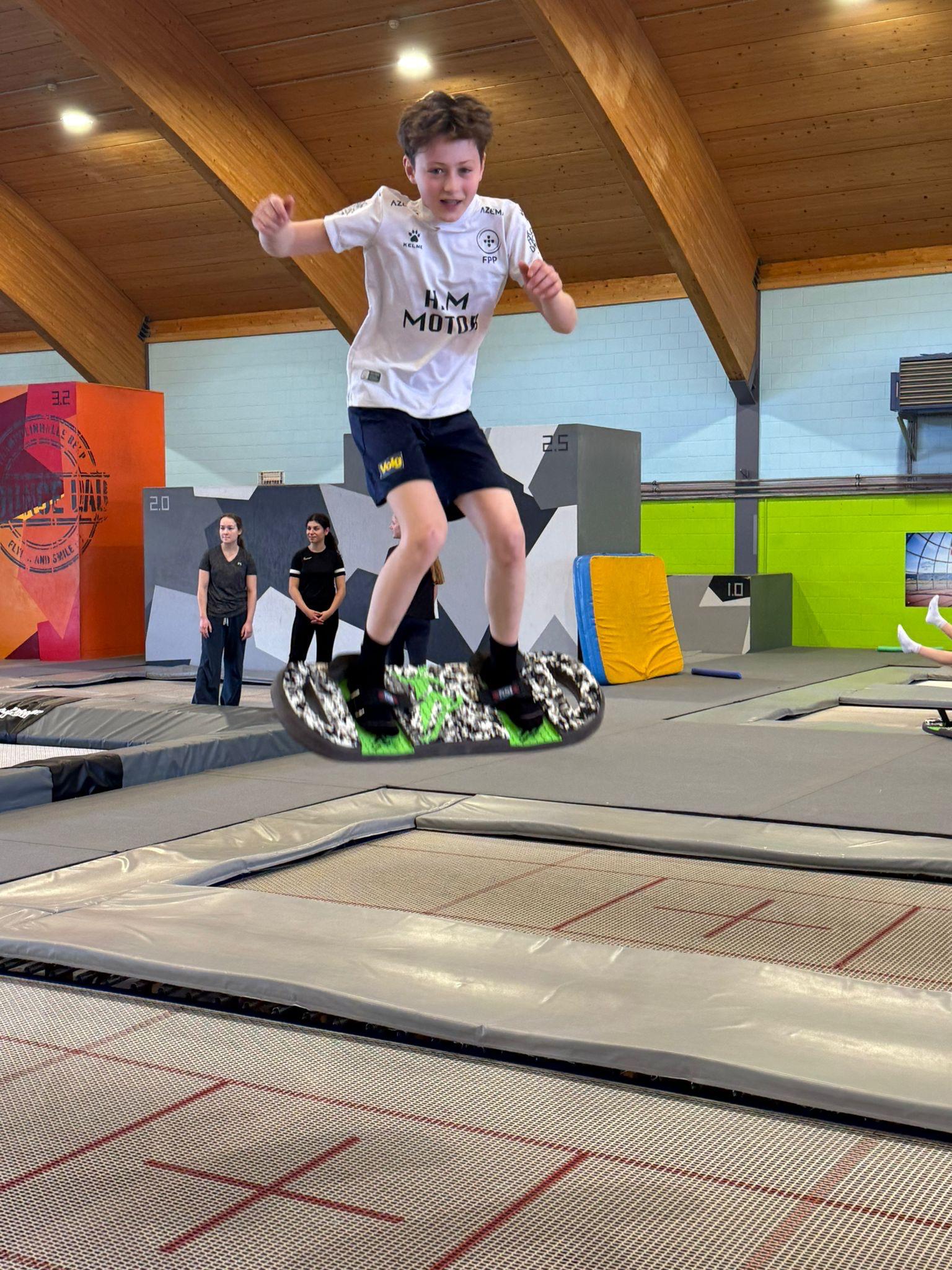 Am Morgen wurden wir wie jeden Morgen mit lauter Musik und drei lauten Stimmen geweckt. Nach einem Frühstück mit „Müesli“, Brot und Rösti liefen wir Richtung Bahnhof. Nach einer kurzen Fahrt mit dem Zug, einer etwas längeren Busfahrt und einem kurzen Fussweg waren wir in der Trampolinhalle in Belp angekommen. Dort konnten wir uns den ganzen Morgen mit Trampoline, Sprungtürmen und ganz vielen anderen Geräten austoben. Nachdem wir uns mit einem Lunch stärkten, liefen alle ohne körperliche Verletzungen aus der Halle. Am Nachmittag fuhren wir mit Zug und Standseilbahn auf den Gurten, um uns nach dem Morgen ein wenig auszuruhen und zu rodeln. Im Anschluss fuhren wir mit dem Zug wieder zurück nach Münsingen. Wir alle waren sehr froh, dass nach einer erfrischenden Dusche, die Spaghetti welche die Küche gezaubert hat, unsere Mägen füllten. Doch mit all dem war der Tag noch lange nicht vorbei denn es fehlte noch die Disco, auf die wir alle seit Tagen warteten.
