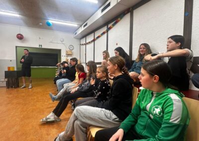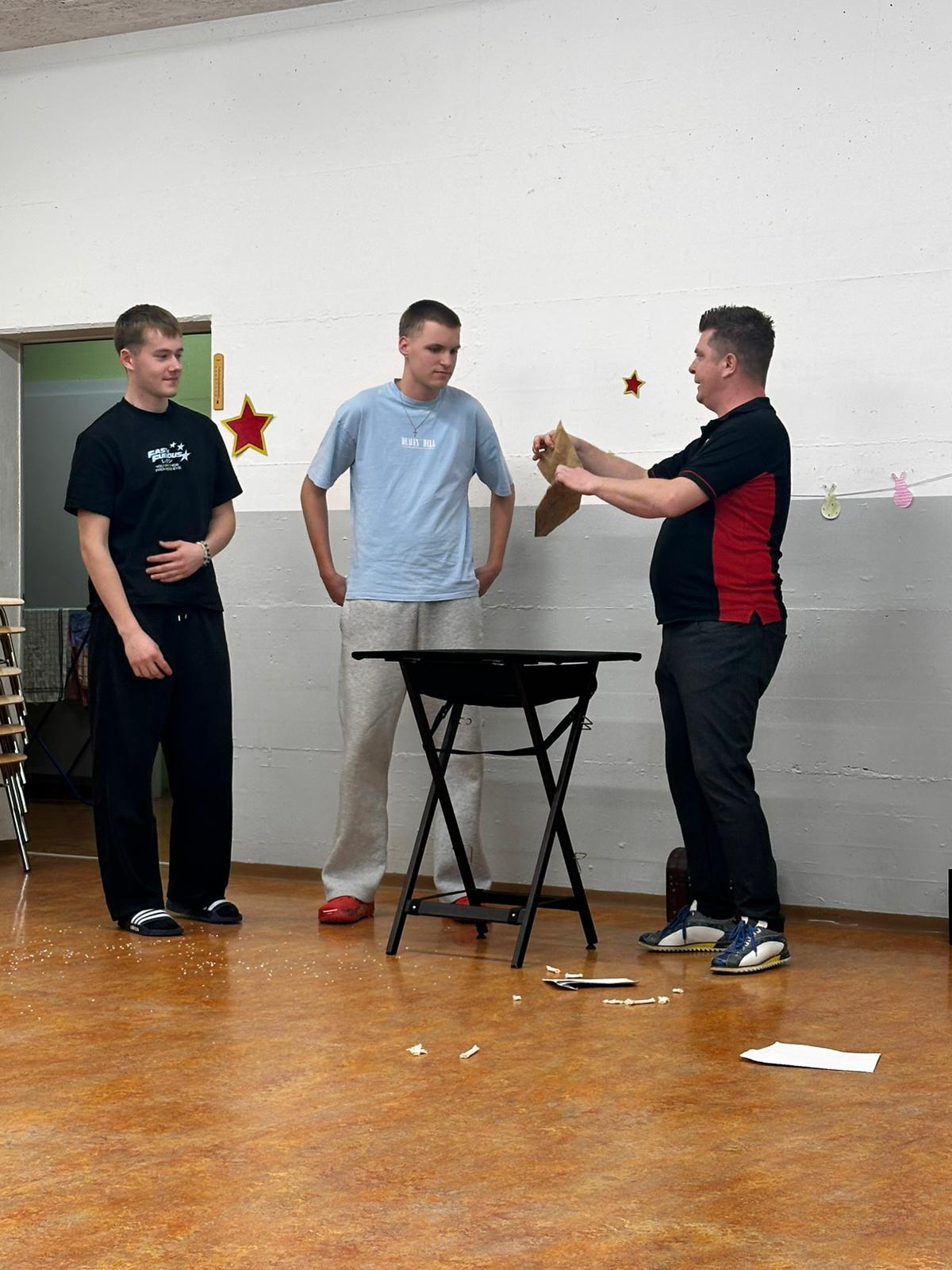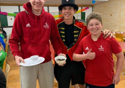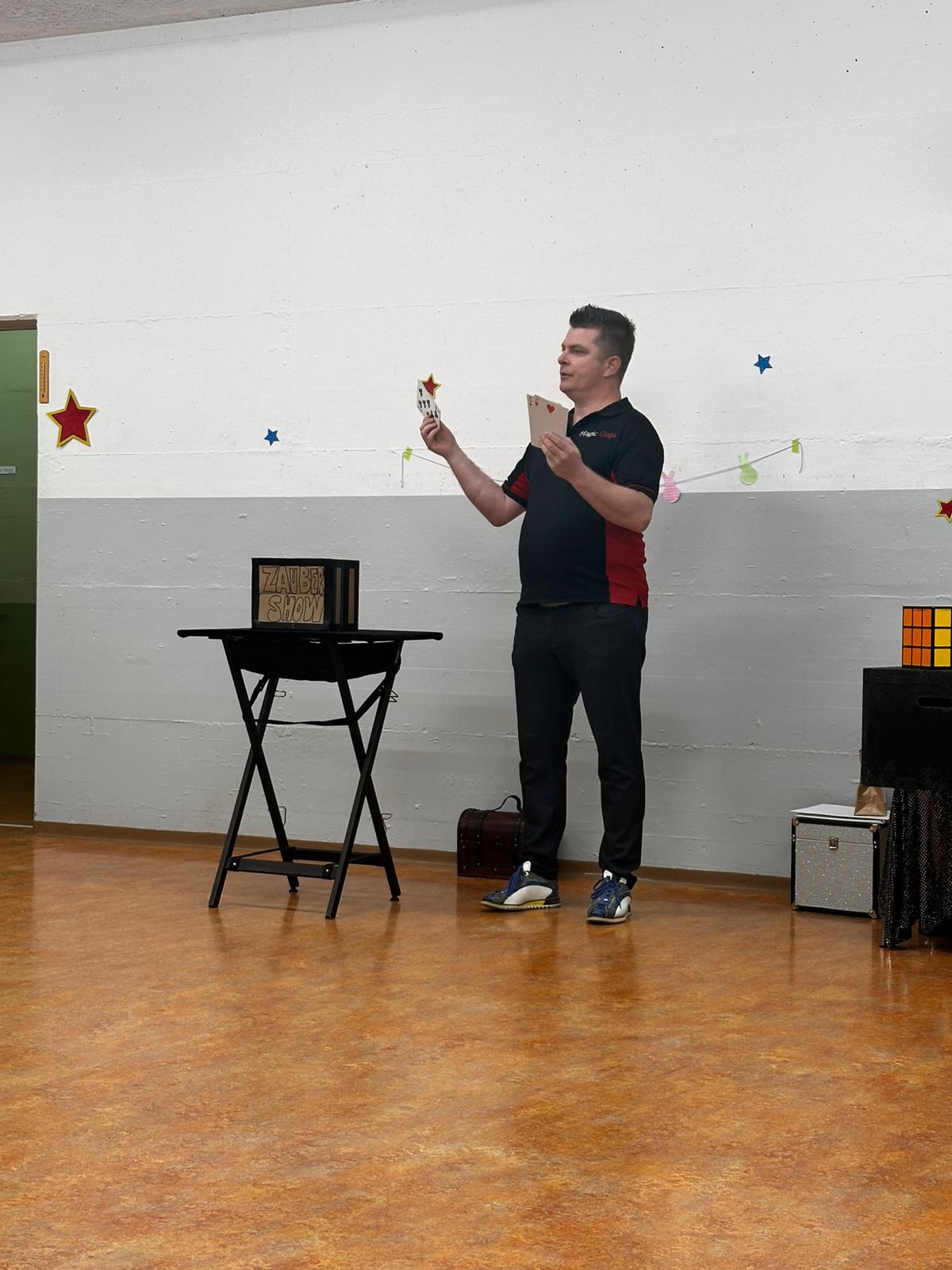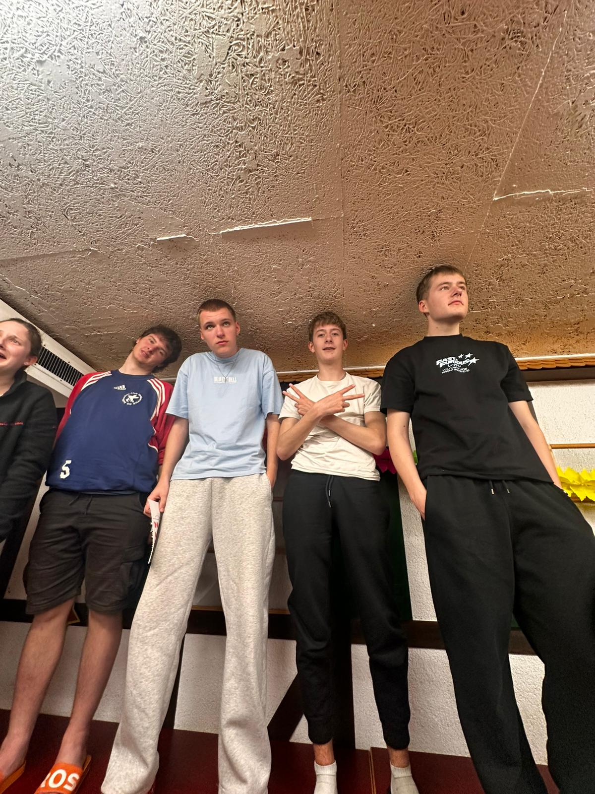 Am frühen Morgen sind wir von lauter Musik geweckt worden, zum Frühstück gab es Cornflakes, Müesli und Brot mit Aufstrich. Nach dem Essen hatten wir Zeit für unsere Ämtli , danach machten wir uns ready und dann hiess es Abmarsch. Unten in der Turnhalle angekommen, wollten wir uns in der Turnhalle aufwärmen. Da aber der Hallenabwart die Türöffnung verpasste, mussten wir uns draussen auf dem Platz aufwärmen. Anschliessend gingen alle in ihre Sparten und führten ihr Programm durch. Um 11:30 ging es wieder auf den Marsch, mit Hecht und co. Zum Zmittag gab es dann Chicken Nuggets, gebratene Kartoffeln, gekochte Rüebli, Salat und für die, die Lust hatten noch eine Gemüsesuppe. Im Anschluss erledigten wir wieder unsere Ämtli und hatten noch eine kurze Mittagspause. Nach dem Mittag, wieder in der Turnhalle angekommen gingen wir wieder in unsere Gruppen und haben anschliessend unsere Trainings. Um 15:30 versammelten wir uns alle für das Sitzball und später noch für die Massage nach dem Duschen. Zum Abendessen gab es dann Wähe mit verschiedener Variationen. Nach dem Essen ging es wieder an die Ämtli und wir hatten Zeit für die Wochenaufgabe. Um 20:00 versammelten wir uns zum nächsten Programmpunkt, es erwartete uns ein Zauberer. Er zeigte spektakuläre Zaubertricks und beeindruckte uns. Zum Abschluss des Tages gab es noch Kuchen von unserem Tagesbesuch Jan Vonäsch und Silja Kupferschmid. Nachtruhe war um 22:00 und wir konnten „friedlich“ schlafen gehen.